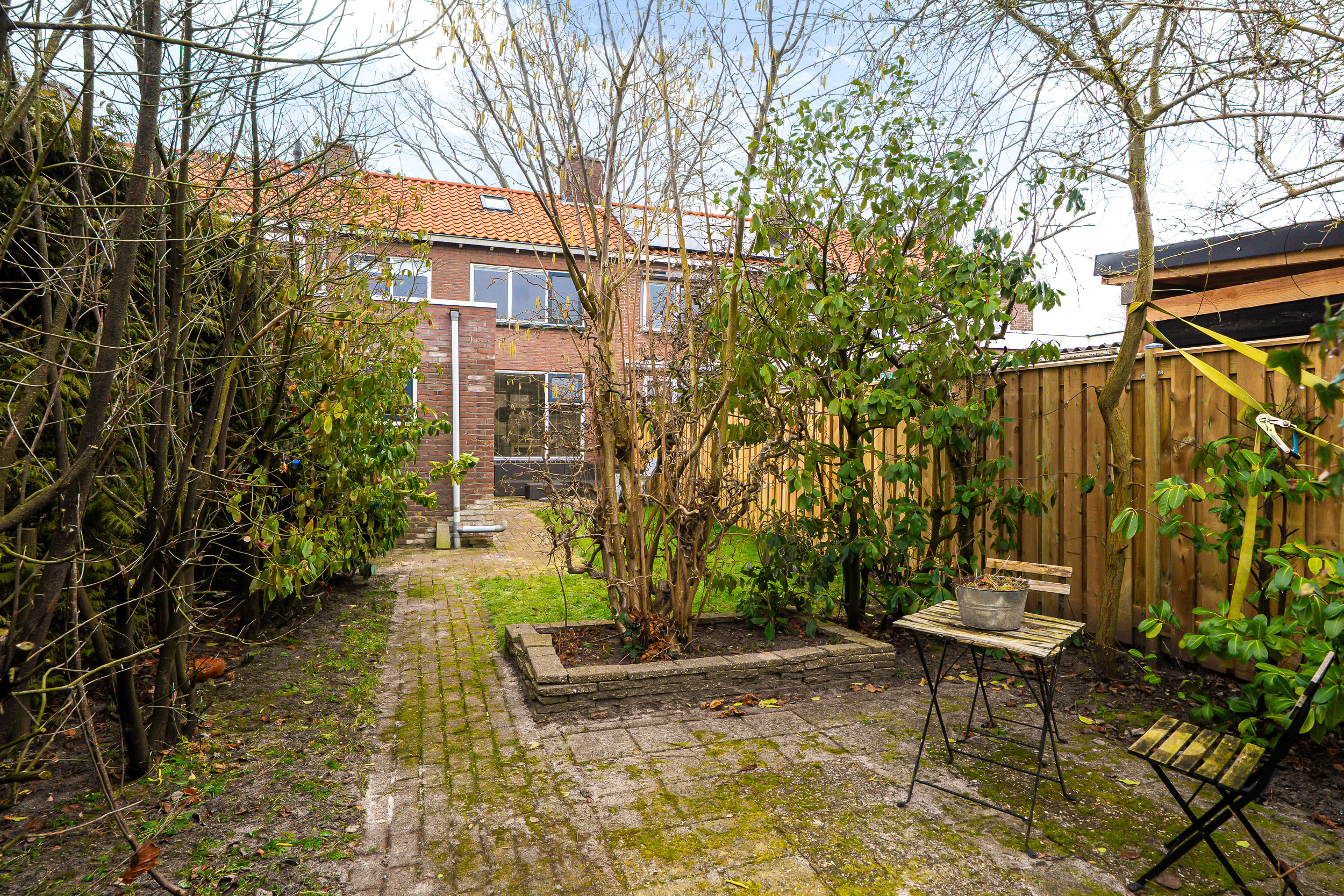 - Zonnige achtertuin op het zuiden met achterom
