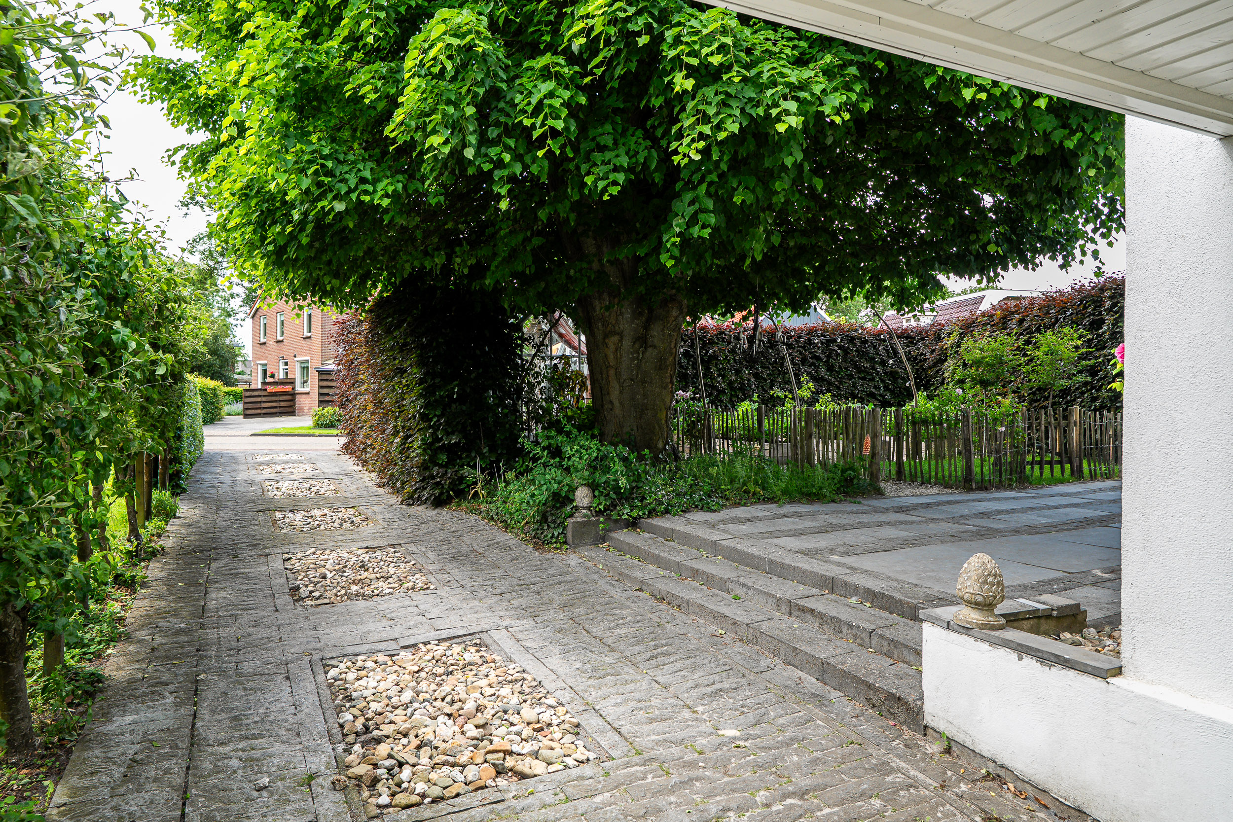 Buiten wacht een verrassend groene oase. Aan de voorzijde een mooie tuin met kas, waar je in alle rust tuiniert, leest of samen eten in de avondzon. Aan de achterkant ligt het Tynster Bos, dat uitnodigt tot wandelen, verstilling en verbondenheid met de natuur.